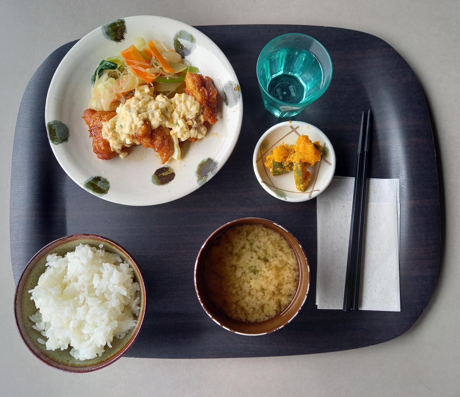 10月1日学校訪問3 本日、10月1日(水曜日)学校訪問営業後の、九段食堂さんでのランチは・・・チキン南蛮定食。¥990円九段会館内に在籍する会社の人と、外部の一般の人と、ランチ提供の値段が多少違うみたいですが、そこはもう・・・景色の良いロケーションのテラス席で食するチキン南蛮定食。おいしくないはずは、ありません。