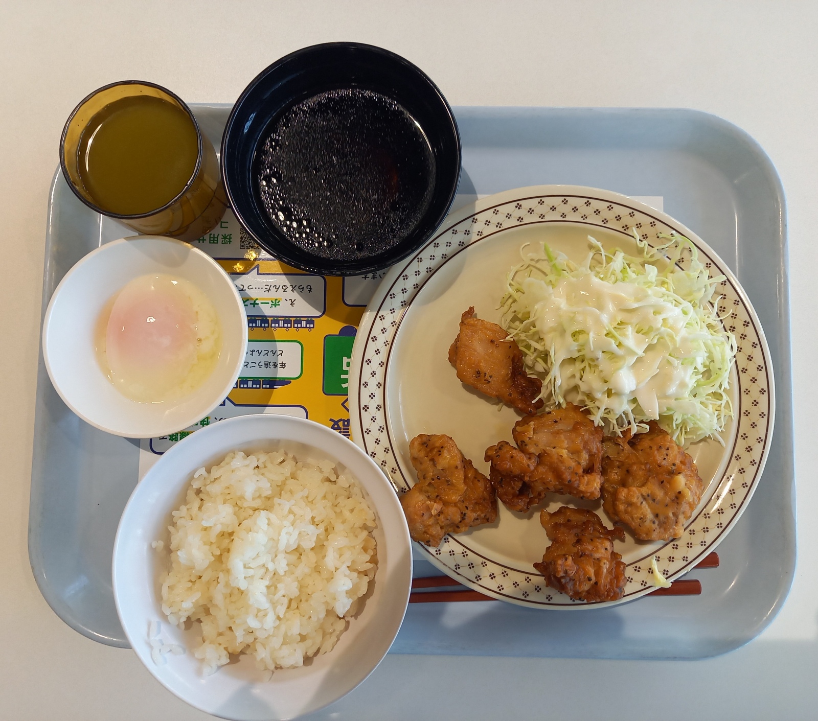 1月26日大学食堂17 1月26日(月曜日)1ヶ月ぶりの、大学研究室訪問。埼玉県、東武動物公園駅が最寄りの大学。日本工業大学。研究室訪問の合間に、大学食堂にてランチ。本日は、日替わり定食B。スパイシーな唐揚げ、スープ、ライスに半熟たまごまで付いて・・・¥410円(○_○)!!